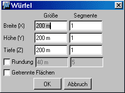 1. Als erstes erzeugen Sie einen Würfel mit folgenden Einstellungen: